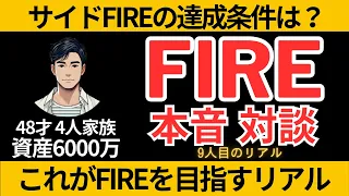 | KEM (48才・資産6000万) | FIREを目指す理由は?![]() | ・どうしてサイドFIREを目指したのか? ・FIREの達成条件をどう考えている? ・FIREしたらどんな生き方したい? |