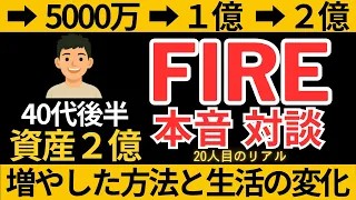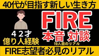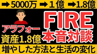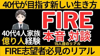 | 不労不死 (40才・資産2億円) | FIRE決断の条件は何?新しい生き方を始めたリアル![]() | ・FIRE前はどんな生活を送っていた? ・どうしてFIREを目指したのか ・FIRE決断の条件は? ・FIRE決断する上での課題や障害 ・不労不死さんからの質問に答える |