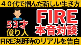 | パセリ (51才・億り人) | FIRE決断の裏にあった娘との会話![]() | ・FIRE前はどんな生活を送っていた? ・どうしてFIREを目指したのか ・FIRE決断する上での課題や障害 |