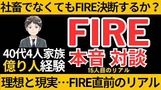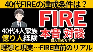 | わんばん | 40代が考えるFIRE達成条件と決断 前編![]() | ・FIREの達成条件をどう考えている? ・FIRE達成後の支出計画 ・FIREに踏み切れた要因は? |