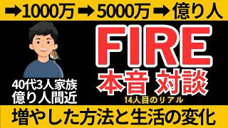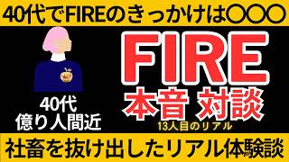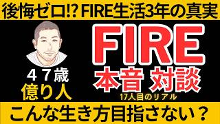 | ねこなべ (41才・資産1.5億) | 30代で掴んだ新しい生き方とは?![]() | ・FIRE前はどんな生活を送っていたか? ・どうしてFIREを目指したのか ・FIRE決断の条件は? ・FIREを決断する上での課題や障害は? |
